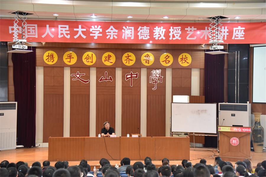 4月18日下午,春风煦暖,名家进校园活动——中国人民大学专家报告会在我校报告厅举行。教育局、文化局、学校领导、全体艺术教师、高二与初一的部分学生以及一部分社