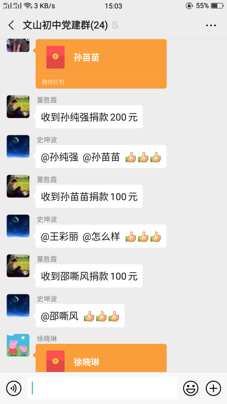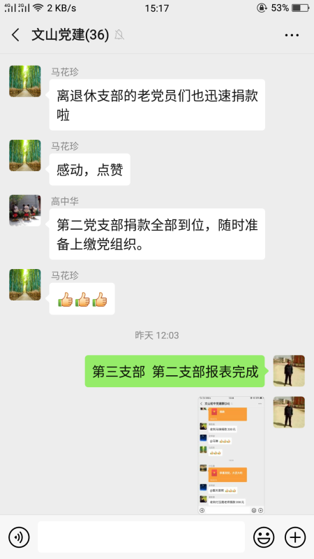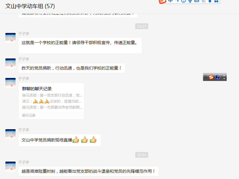 组织有召唤,党员有回应。截止到3月3日,文山中学党委7个党支部199党员(包括离退休老党员)通过微信转账等方式,总计自愿捐款达29580元。