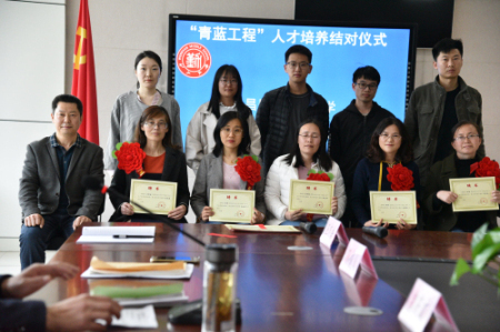 首先,青年教师给自己的指导教师佩戴红花。党委委员孙俊义为指导教师颁发聘书,并合影留念。