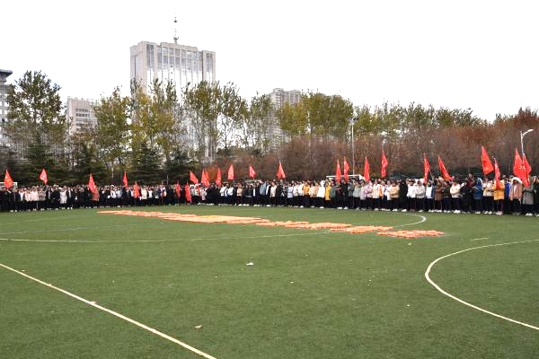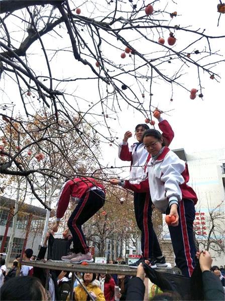 11月28日上午,文山中学在柿林广场和田径场举行了以“奋斗正青春,永远跟党走”为主题的“2019年柿子节”。学校党委书记、校长于子芹等学校领导和2017级全体高三师生参加。本届柿子节共分两个阶段:第一阶段是“师生手相连、合作共采摘”。上午三节课后,高三师生共聚柿林广场,围在柿子树下,不少同学和老师登上架子,摘下火红诱人的柿子,下面的同学欢呼着举高双臂去捧接;接到柿子的同学纷纷同身边的老师、同学品评起这陪伴他们春夏秋冬的果树和她的美丽果实,整个广场沉浸在一片欢声笑语之中……第二阶段是“奋斗正青春、永远跟党走”主题教育活动暨期中质量检测表彰大会。采摘完毕,师生们共聚田径场。此前,同学们已经用精选的6000个柿子,在足球场上摆成巨大的“党旗”,两边分别拼成“奋斗正青春”和“永远跟党走”十个大字。绿地映衬着火红的柿子,每一寸图案都代表着同学们赤诚的“士子之心”;30个班级整齐排列拱卫在党旗四周,班旗烈烈,精神抖擞。当第一项国歌嘹亮响起时,全体师生高唱国歌,表达了对党和祖国的热爱、祝福与深深敬意。随后第二项,朱光辉主任宣读综合素质优秀学生名单,希望同学们以此为榜样,树立远大目标,不负青春,永久奋斗。第三项由学生代表陈佳一同学发言,他分享了自己的学习方法,努力学习,为实现梦想而奋斗!第四项是教师代表周倩倩发言,她用自己的亲身经历,阐述了一个美好的梦想会对一个人的人生起到的励志作用,希望同学们奋斗高三,像柿子一样经历风雨霜寒,迎来美好成功。第五项,于子芹校长作了题为《奋斗正青春,永远跟党走》的讲话,她说,奋斗的青春最美好,奋斗的征程亦艰难。奋斗路上,我们不是一个人在行走,而是一群人共携手,但最终陪伴我们坚定不移走下去的,是信心、是信念、是信仰!信仰来自哪里?“永远跟党走”,方向不会错!方向正确,心有力量,就会把小我融入大我,充实自己,报效祖国!第六项是学生宣誓。在温焕建同学带领下,全体同学举起右手,庄严宣誓。西风飒飒,掩不住青春的激情;天高地阔,看我辈独领风骚。最后,各班级纷纷在党旗前合影留念,留下美好的瞬间。“羡子年少正得路,犹如扶桑初日升”,愿全体文中学子“奋斗正青春,永远跟党走”,在实现中国梦的生动实践中放飞青春梦想,在为中华民族伟大复兴的奋斗征程中书写人生华章!