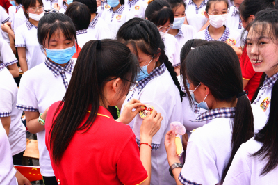 随后,学校领导给各班赠送了绿植,寄托了全校师生对高三学子的殷切期望和对伟大祖国的美好祝福。校领导和老师还走到学生中间,为同学们粘贴加油贴,拍拍肩膀、互击手掌,让同学们以最好的状态迎接高考。